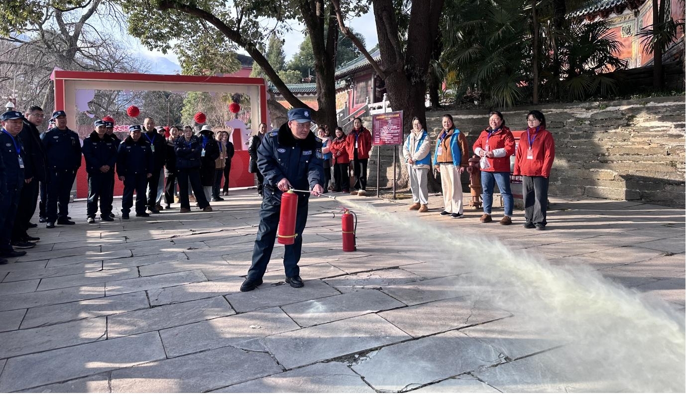 为切实筑牢全国重点文物保护单位安全防线,全力保障春节期间景区开放与文物安全,2026年2月10日,平武报恩寺博物馆联合消防设施维保单位、县文旅集团开展消防安防一体化应急演练。博物馆馆长郭杨出席并作动员部署,消防维保单位技术人员现场授课指导,全体在岗工作人员参加演练。