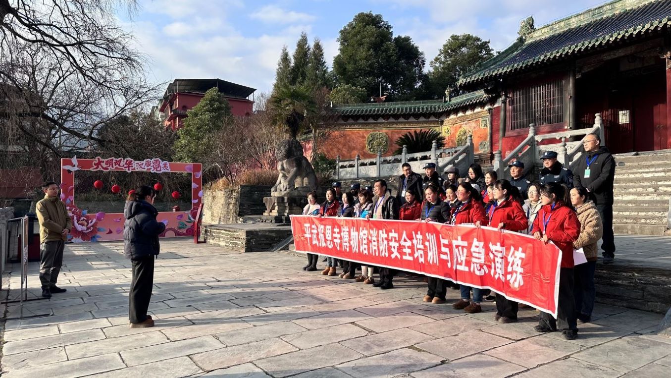 为切实筑牢全国重点文物保护单位安全防线,全力保障春节期间景区开放与文物安全,2026年2月10日,平武报恩寺博物馆联合消防设施维保单位、县文旅集团开展消防安防一体化应急演练。博物馆馆长郭杨出席并作动员部署,消防维保单位技术人员现场授课指导,全体在岗工作人员参加演练。
